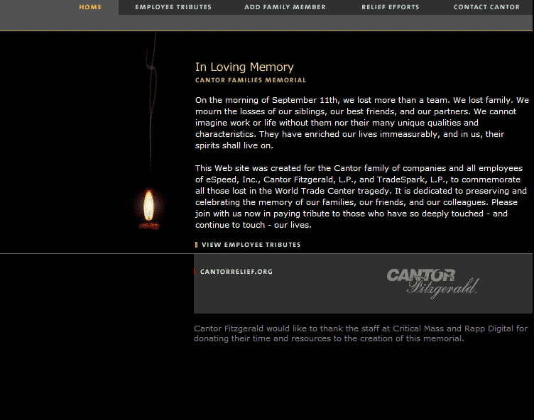 | Comments: | This is a website of tributes to our employees that perished in the World Trade Center. | |